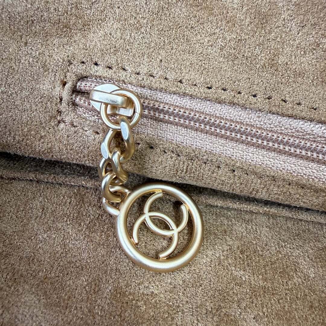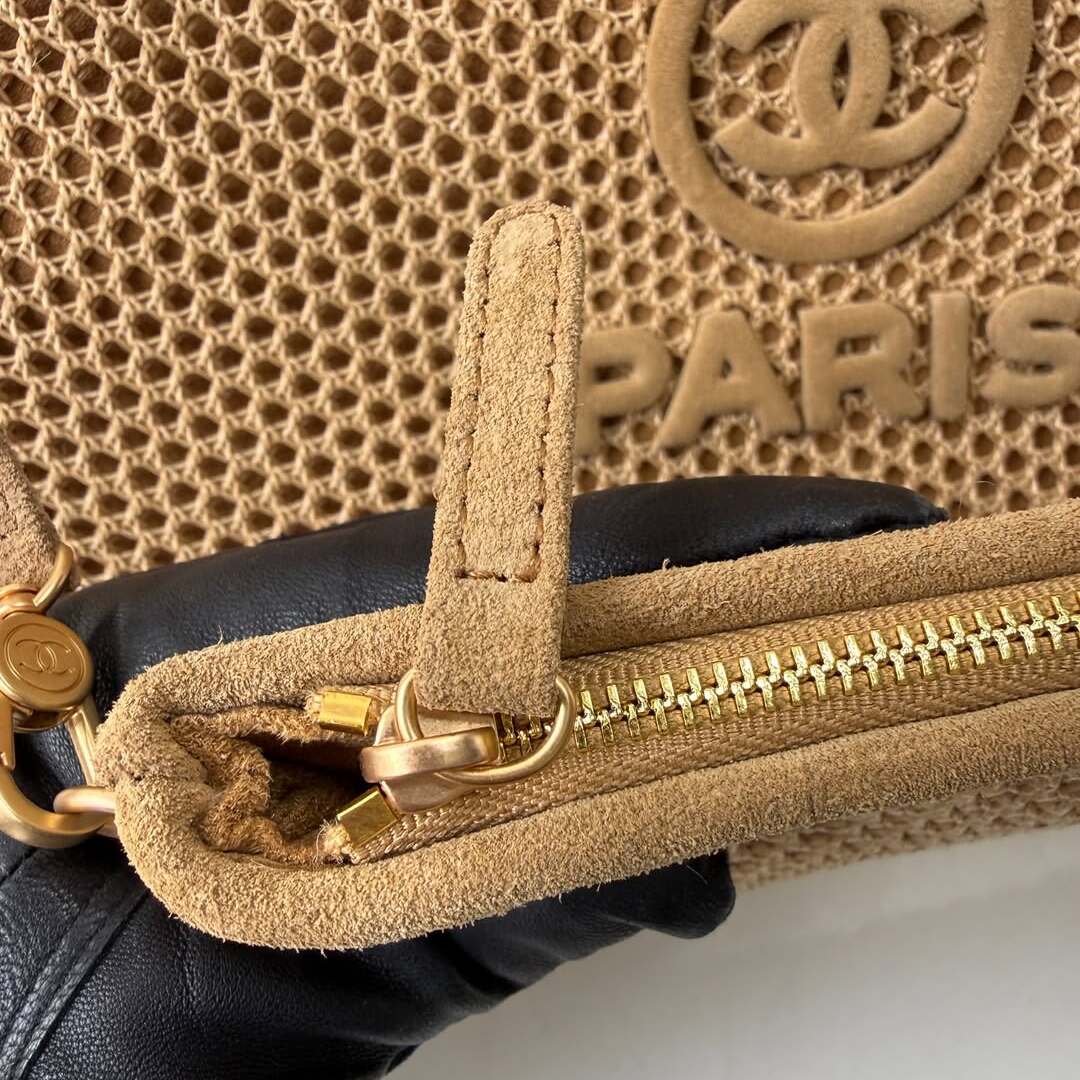 Embroidered Signature Branding: The front is prominently adorned with the “CHANEL PARIS” logo and the interlocking “CC” motif in a raised, tonal velvet-like embroidery.