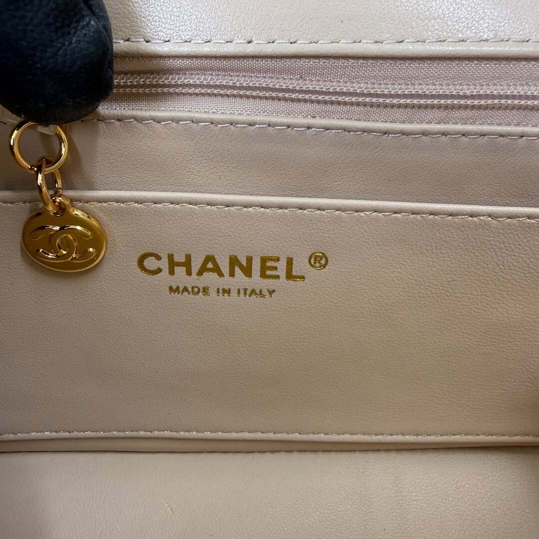 24K Gold-Plated Hardware: Adorned with a high-shine CC turn-lock clasp and an interwoven leather-and-chain strap featuring authentic 24K gold plating, a hallmark of vintage Chanel craftsmanship.