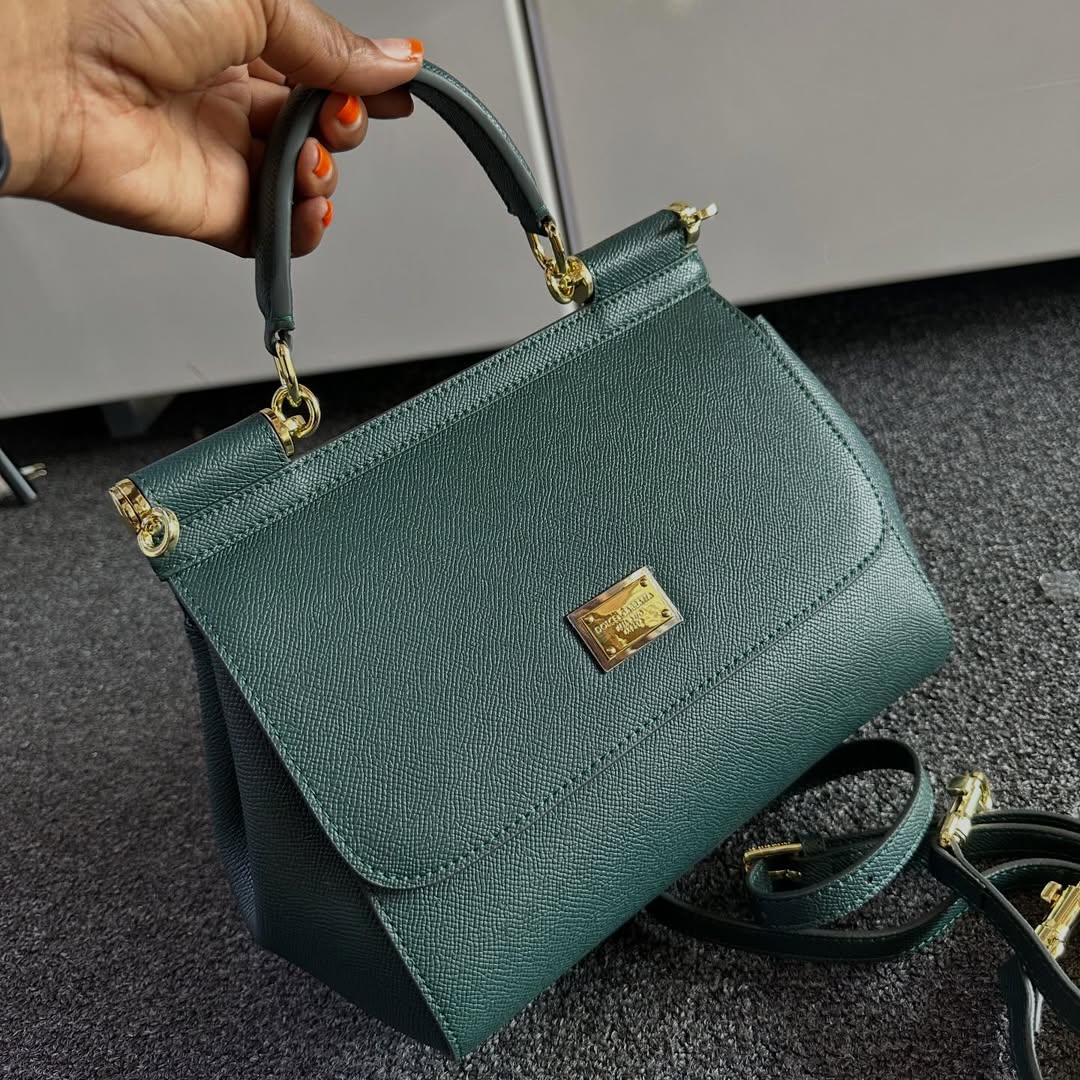 The Dolce & Gabbana Medium Sicily in deep emerald green is a masterpiece of Italian design, channeling the sophisticated spirit of Sicily. Crafted from the brand’s signature Dauphine calfskin, this bag offers a structured, architectural silhouette that is as durable as it is elegant. The rich, jewel-toned green leather paired with brilliant gold-tone hardware makes this an exceptional statement piece for the discerning collector.