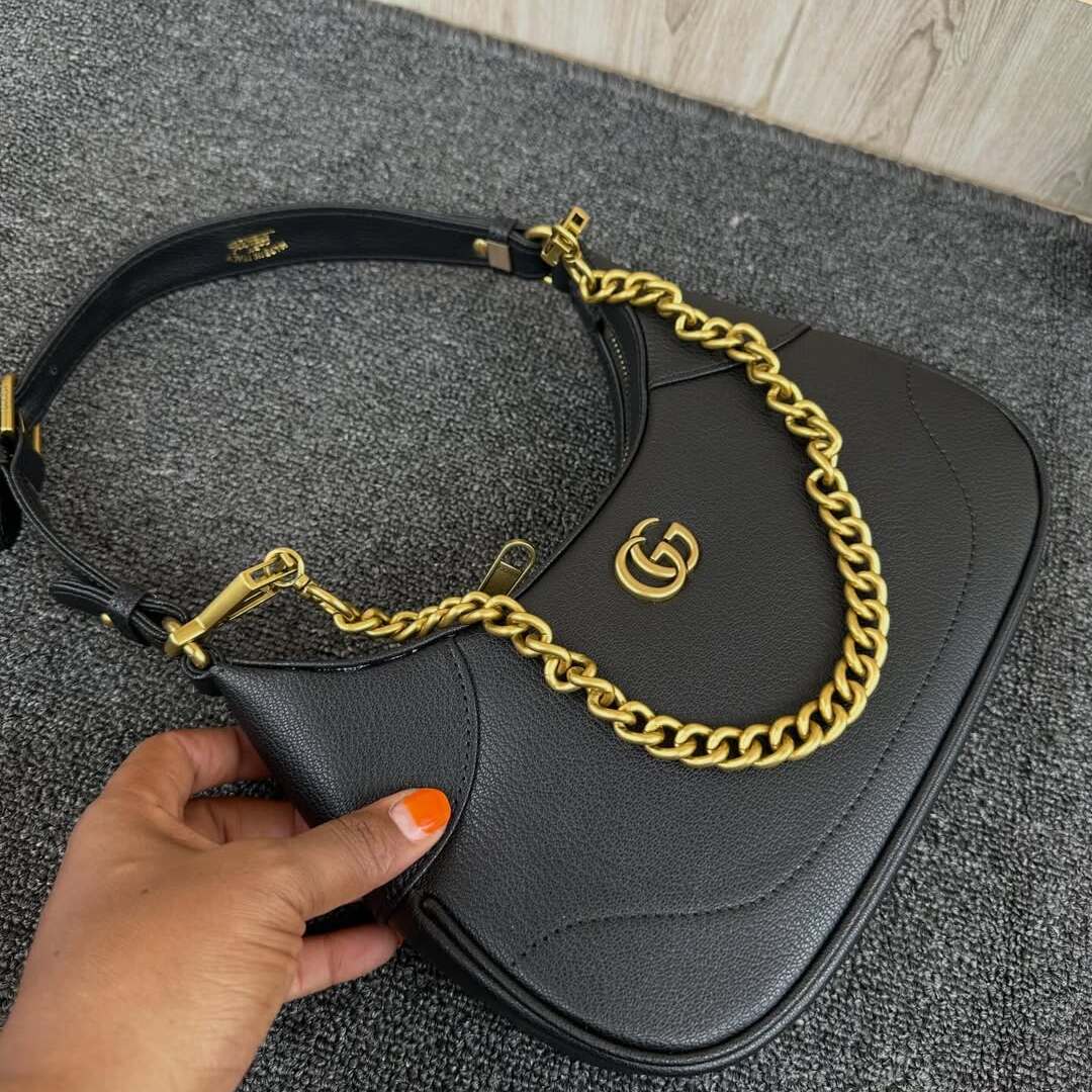 This Gucci Aphrodite Small Shoulder Bag is a masterful blend of archival codes and contemporary utility, making its debut as a standout piece of the Cruise 2023 collection. Inspired by the sleek, minimalist silhouettes of the late 1990s and early 2000s, this crescent-shaped hobo is meticulously crafted from soft, grained leather that offers a beautiful natural luster. Adorned with the iconic Double G hardware—a house signature revived from the 1970s—this bag is a treasure for the modern collector seeking a piece that embodies both the legacy of the past and the edge of the present.