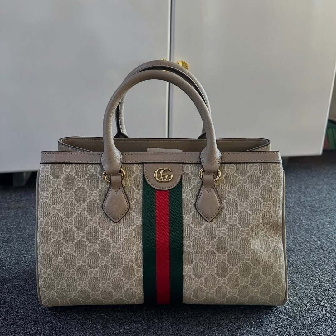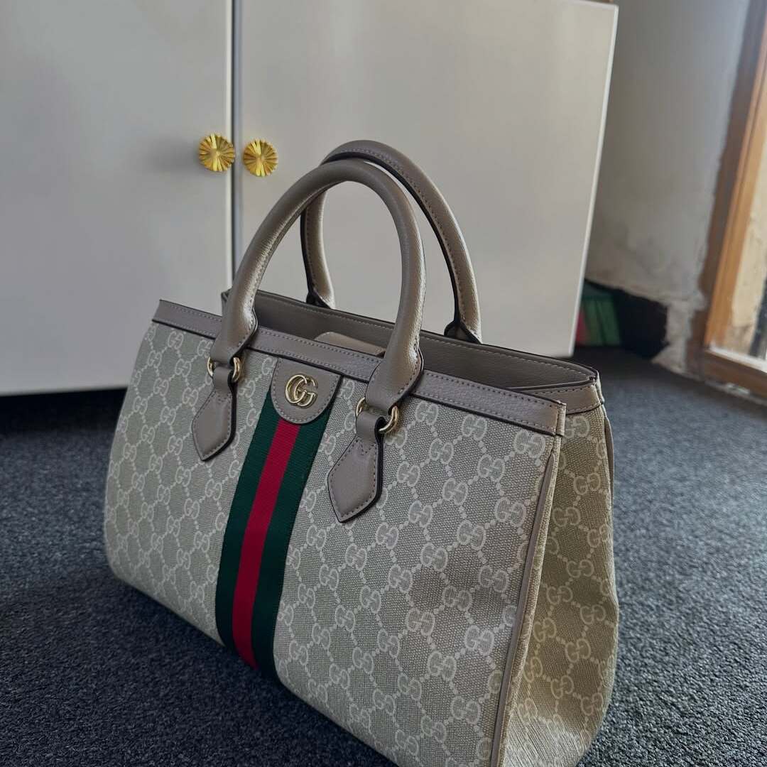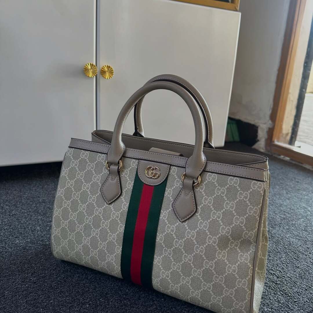 The Gucci Ophidia Medium Tote is a quintessential blend of the House’s most recognizable heritage codes—the GG Supreme canvas, the green and red Web stripe, and the Double G emblem. Designed as a highly functional “shopper” silhouette, this medium edition is perfectly sized for the modern professional, offering ample space for a laptop and daily essentials without sacrificing its structured, high-fashion appeal.