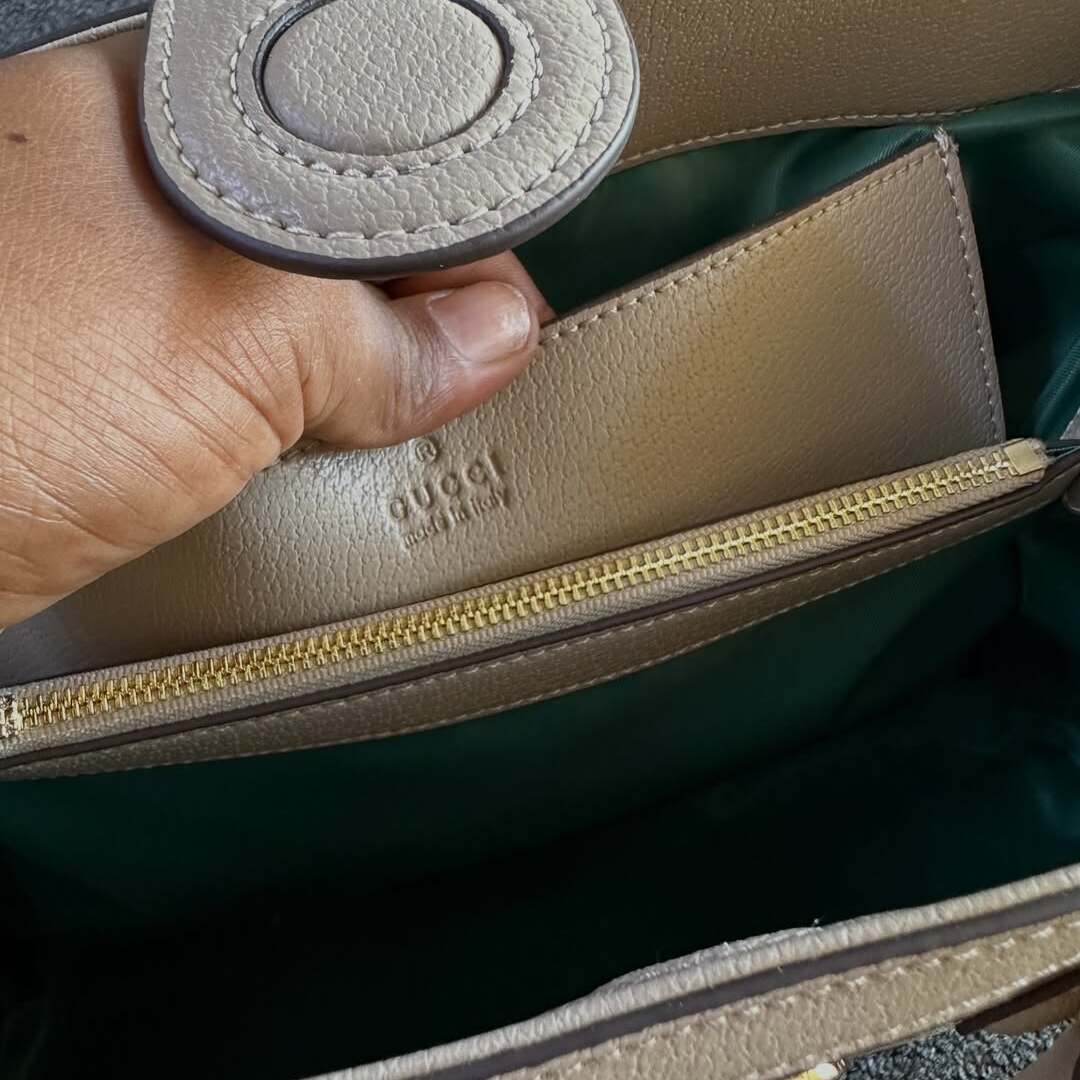Double G Hardware: Adorned with a small gold-toned Double G logo on the front—a 1970s archival signature—finished in a light, polished gold.