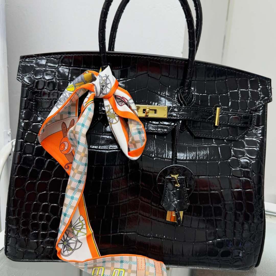 The Hermès Birkin 35 in Shiny Black Crocodile leather represents the absolute pinnacle of high-fashion collecting. This extraordinary archival piece is meticulously crafted from exotic Niloticus or Porosus crocodile skin, hand-polished to a brilliant, high-shine finish that captures light with every movement. It is a masterpiece reserved for those who demand the rarest treasures in the fashion world.