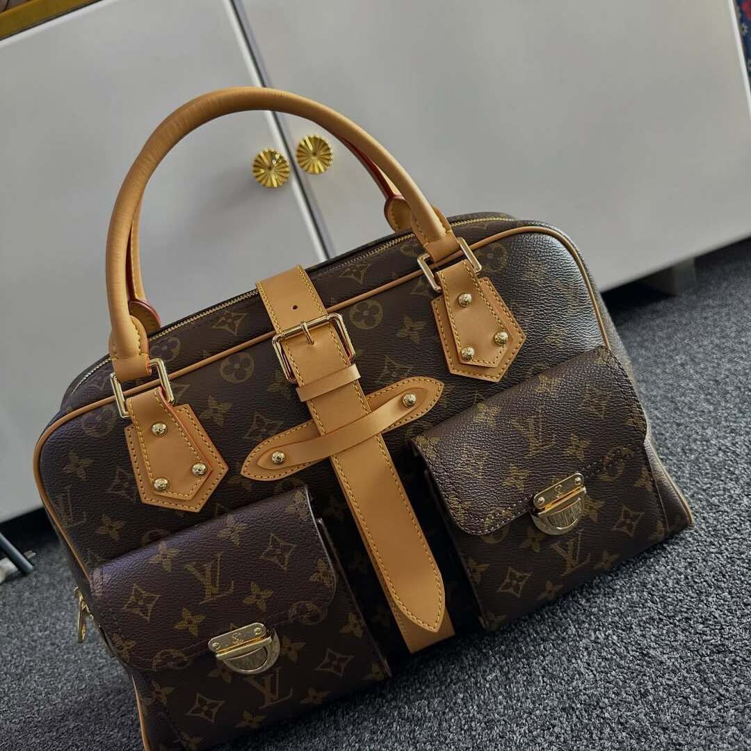 The Louis Vuitton Manhattan GM is a sophisticated, architectural powerhouse that debuted as a bold modern classic within the Maison’s permanent collection. Named after the vibrant energy of New York City, this bag is a masterful blend of the historic Monogram canvas and high-utility design, characterized by its distinctive front cargo pockets and substantial gilded hardware. It is an essential choice for the professional collector who requires an organized, large-capacity bag that doesn’t compromise on luxury.