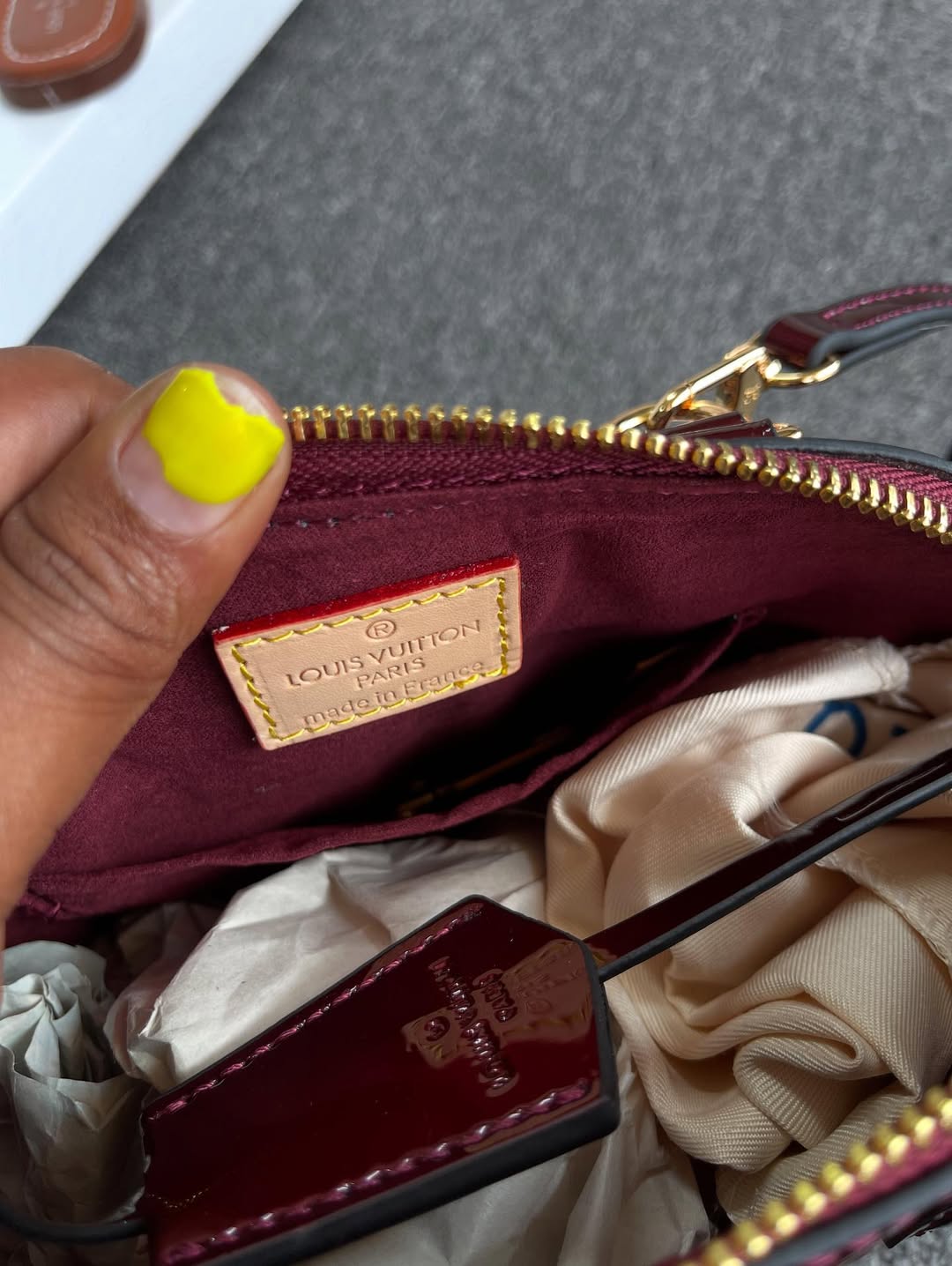 Louis Vuitton Monogram Vernis Alma BB Satchel is a chic, compact version of the iconic Alma bag. Crafted from glossy Monogram Vernis patent leather, it features a structured silhouette, double top handles, and a removable strap for versatile carry.