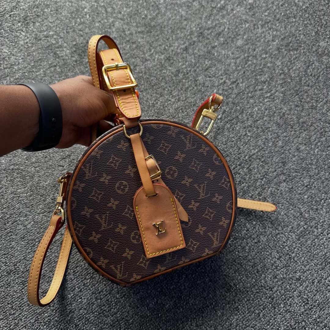 The Louis Vuitton Petite Boite Chapeau is a spectacular reimagination of the Maison’s historic hat box, transformed into a chic, high-fashion evening bag. First introduced in the Cruise 2018 collection by Nicolas Ghesquière, this “Little Hat Box” has rapidly become one of the most sought-after statement pieces in the luxury world, celebrated for its unique circular silhouette and impeccable craftsmanship.